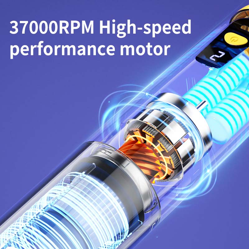 Batterie haute capacité offrant une autonomie prolongée, embouts interchangeables et chargement USB-C.