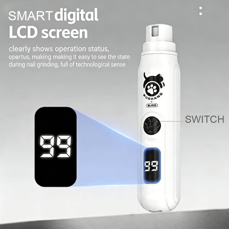 Notre Lime à ongles électrique professionnelle pour animaux de compagnie Assure un toilettage sûr et précis pour les chiens et les chats de toutes tailles. Doté d'un écran intelligent pour un suivi en temps réel et d'une fonction de limage professionnelle, il prévient le sur-limage et protège les griffes de votre animal. Son action de limage douce offre une finition polie digne d'un salon de toilettage.