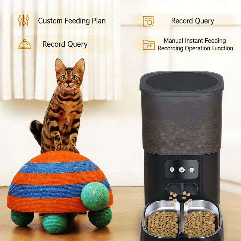Ce distributeur automatique intelligent pour animaux de compagnie Doté d'une grande capacité de 4,5 L, d'une télécommande Wi-Fi via une application et d'un enregistrement vocal pour des appels personnalisés, ce distributeur automatique de nourriture pour animaux de compagnie est équipé d'un système de distribution programmable et doseur, d'une conception amovible facile à nettoyer et d'une gamelle durable en acier inoxydable 304. Il garantit ainsi une alimentation pratique et hygiénique à vos animaux à tout moment.