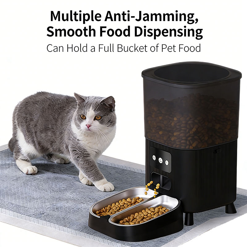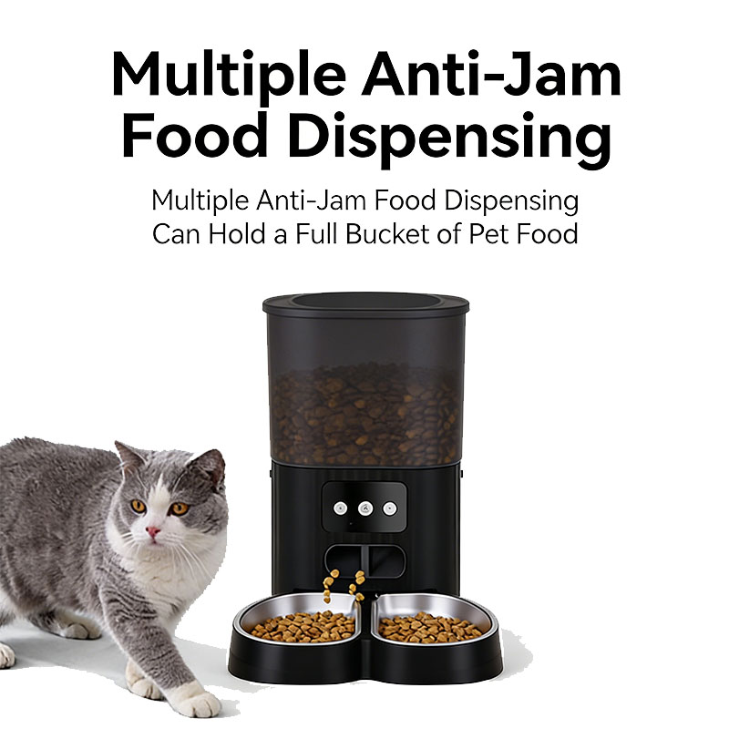 Contient jusqu'à 4,5 L de nourriture sèche, idéal pour les absences prolongées ou les foyers avec plusieurs animaux de compagnie sans remplissages fréquents.