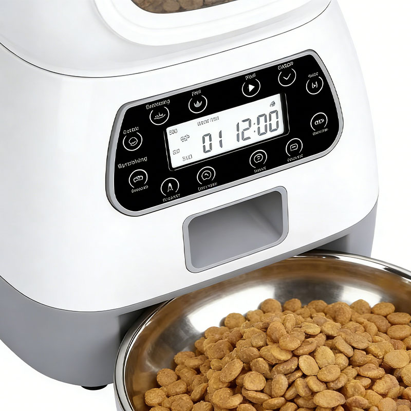 Bolo™ Distributeur intelligent de nourriture pour animaux de compagnie de 3,5 L Ce distributeur automatique distribue des repas précis, à heures fixes et en portions adaptées, grâce à son réservoir de grande capacité. Ses deux modes d'alimentation garantissent un fonctionnement continu, et son enregistreur vocal intégré vous permet d'appeler votre chat personnellement. Les capteurs infrarouges préviennent efficacement les blocages, tandis que sa conception amovible simplifie le nettoyage. Une solution pratique et fiable pour maintenir sans effort le rythme d'alimentation de votre animal.